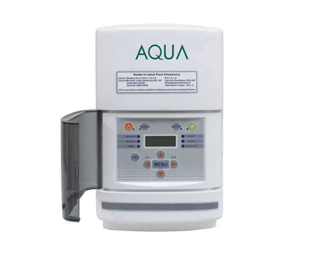 AQUA系列鹽加氯器,其可自動(dòng)生成適當(dāng)濃度的氯消毒劑。可有效消除水體中的細(xì)菌和藻類(lèi),鹽加氯機(jī)可通過(guò)控制加在電解反應(yīng)盒的電能來(lái)控制氯消毒劑的產(chǎn)生量。鹽加氯機(jī)的電解反應(yīng)盒裝置由一系列的帶有相反電荷的鈦電極組成,當(dāng)水流從電極上流過(guò)時(shí),即發(fā)生電解,并將氯從鹽中還原出來(lái)并釋放到水中以便維持水體的清潔。